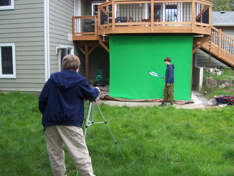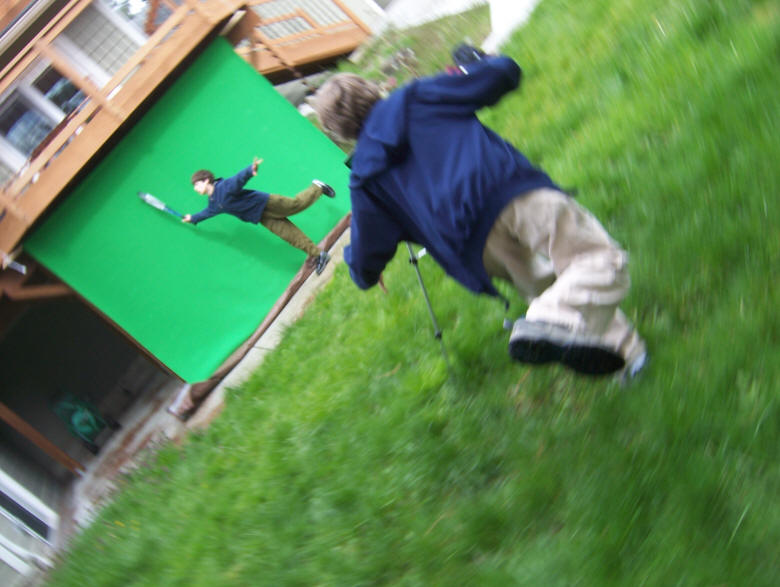 Returning to the house, the boy's shoot the film's green screen segments.