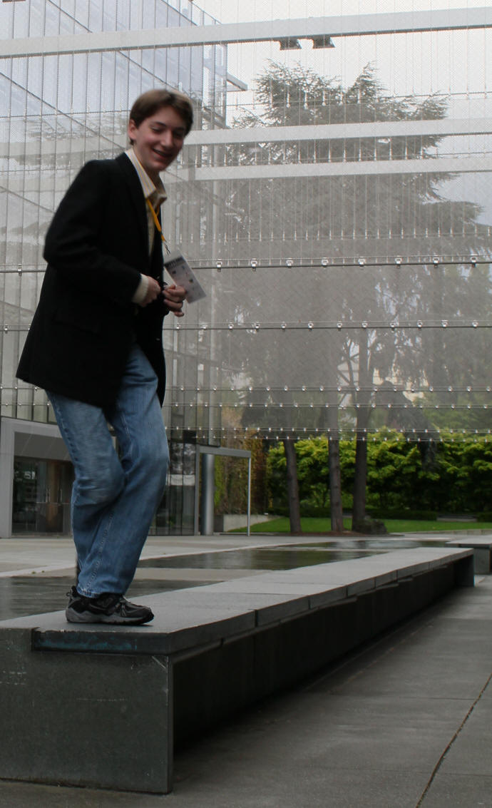In the lobby, Ben talks with the folks from