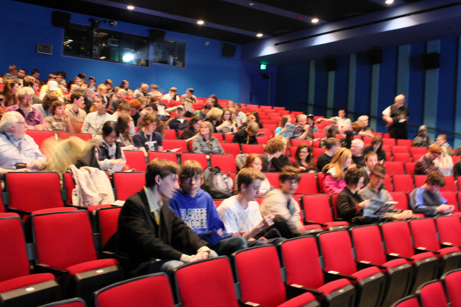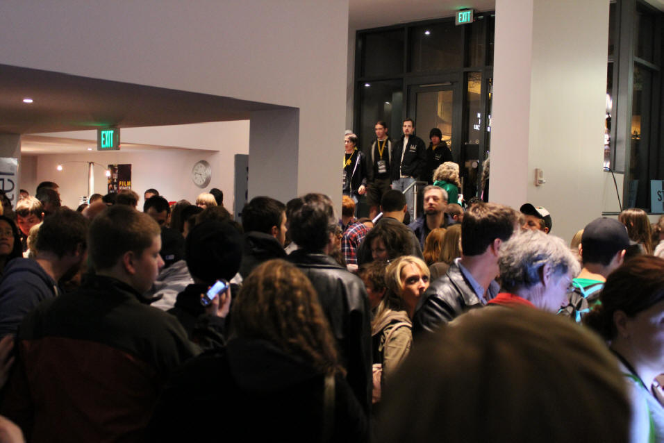After the screening, the lobby filled. On the stairs we saw